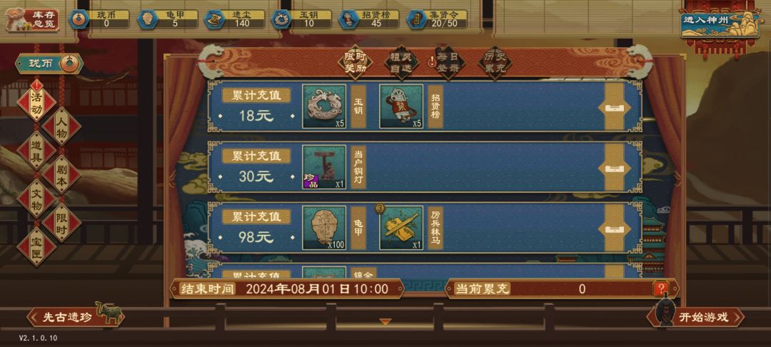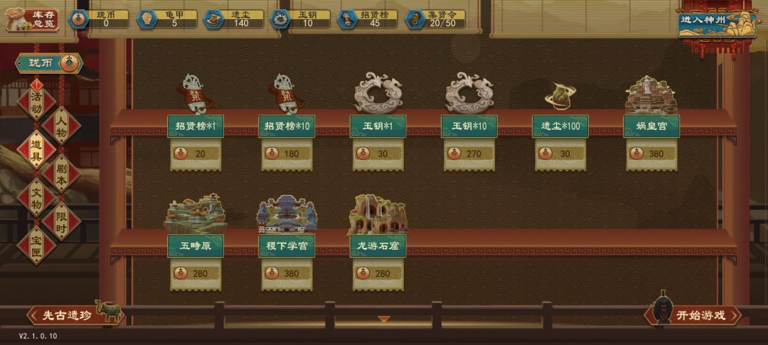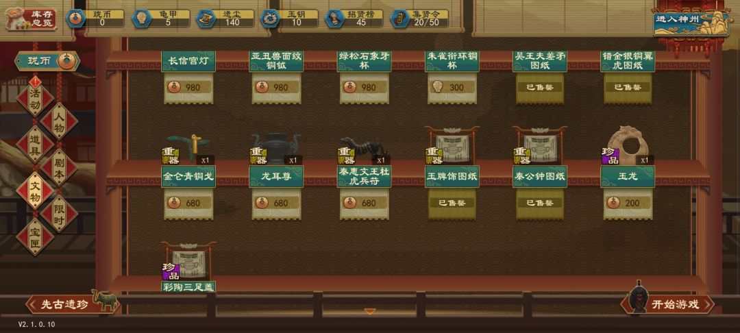 文物分解成遗尘,可以说是唯一获得遗尘的地方(不充钱)
