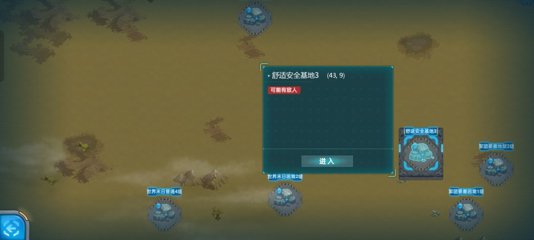 世界没敌人的大点的地图有3个吧,都开通可以做副基地用。有需要拉出来大批量生产一批,可以用挺久。