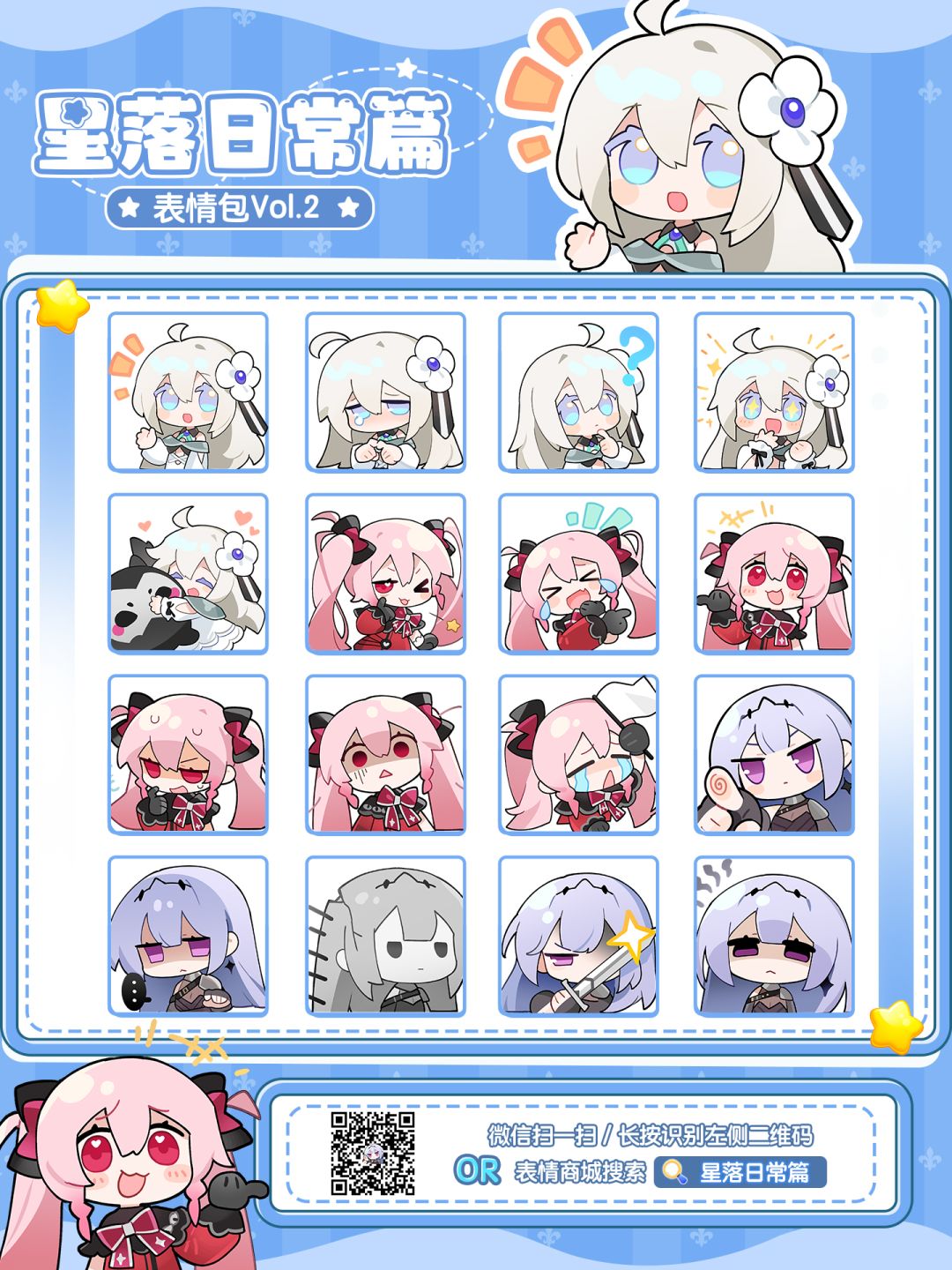 图中二维码、或在【表情包商城】搜索『星落日常篇』即可前往添加!