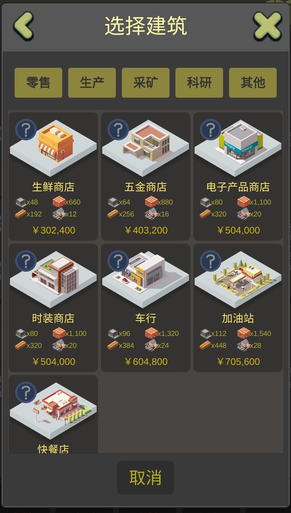 ⭐成就(完成成就获得大量现金奖励,点击成就界面下方的百科,有游戏常见疑问解答和每个建筑、商品的关系图)