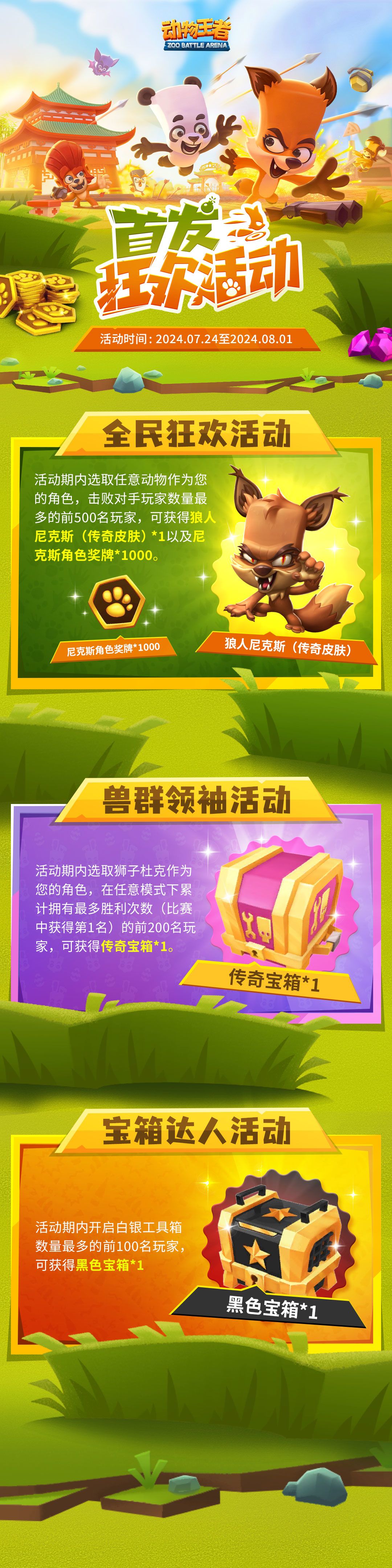 《动物王者》7月24日公测,同时开启游戏内三大挑战活动,参与就有机会获得奖励!