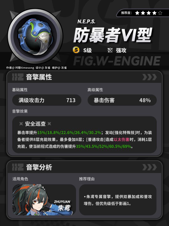 防爆者是朱鸢的专武,主属性为暴击伤害,刚好契合朱鸢核心技的高额暴率。