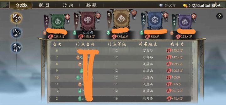 第二个是宗门友好度,宗门友好度30是一个分水岭,友好度30之前送礼是提升好感的主要方式,费用较大,前期不建议使用,因此友好度如果能够在首次拜山时便取得较高的友好度,会节省很多宗门令牌。具体操作为,当你个人善恶为负值20以上,此时你主动跟魔派宗门拜山,选唯我独尊,钱选最大10000,能轻松得到30以上的好感度;个人善恶在-20到20之间,个人为中立,此时主动跟中立宗门拜山,选兼爱非攻选项也能得到30以上的好感度;个人善恶在20以上时,主动与正道门派拜山,选珠联璧合也能得到30以上的好感度。其他宗门主动与你结交的时候,同样是三个选项,与你主动结交的三个选项相对应。30以上好感度之后,选挑战,品茗答题,一次消耗一个宗门令牌,得到5好感度外加门派送你的奖励。宗门好感度60前期足够你买大部分材料,包括秘籍、装备强化和阵法材料、五行灵池,前期能够极大提升个人战斗力。