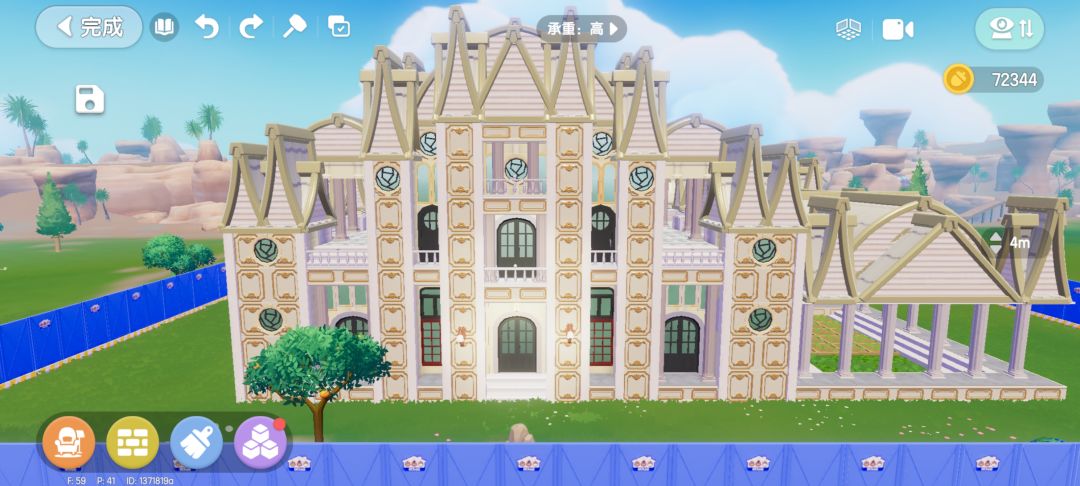 第二天,做完任务突然发现可以开新地块了,直接把原来的曲折墙扩展,重复之前差不多的建筑方法造了个车库加阳台,其实扩建并不难,照搬原来的墙体结构打个口子过人按照之前的装修风格改就好了