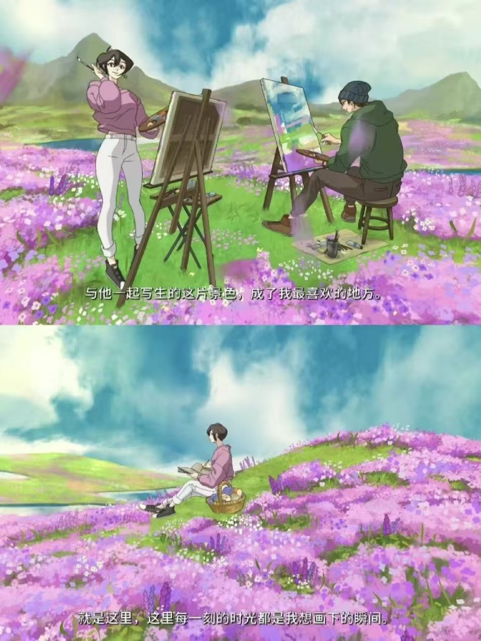 雨天的偶遇、咖啡馆的默契、草地上的笑颜…如同画卷般缓缓展开,我们置身于故事中,感受着画家生生不息的悲喜。每当夜幕降临,年轻画家独自面对那些画作时,那份对过去的渴望与对未来的向往交织在一起,让我感同身受。