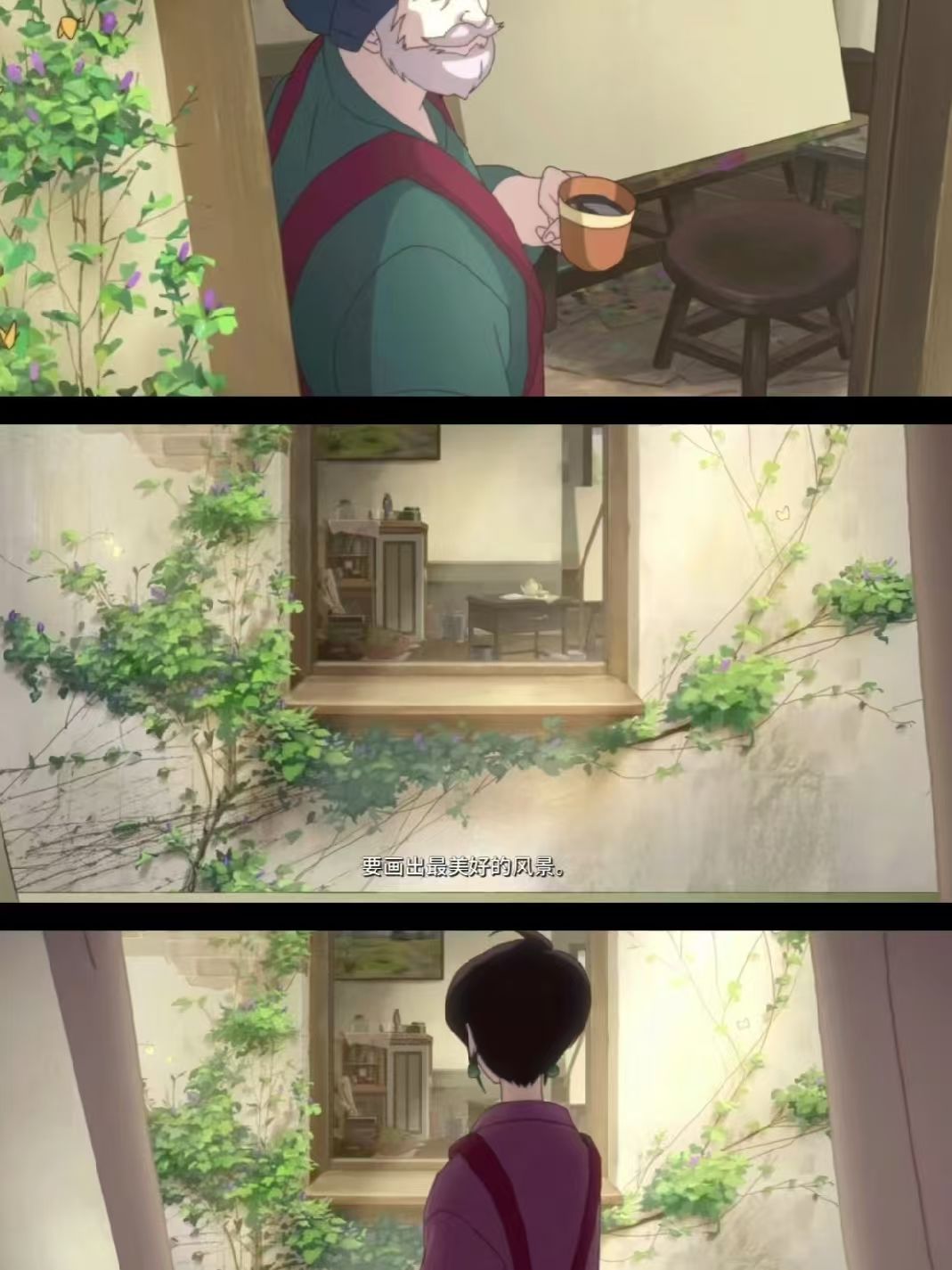 之后我逐渐发现,这些画作不仅是美的展现,更是记忆的再现。如同无声的电影,讲述着过去与现在的交织,梦想与现实的碰撞。老人与年轻画家之间的画作,仿佛在诉说着一个关于遗忘与寻找、失去与重获的故事。