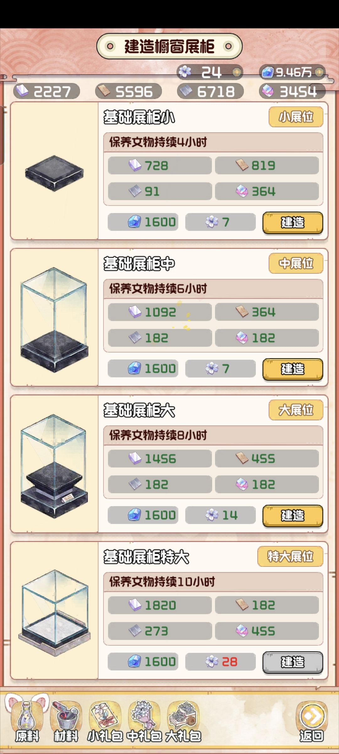 第三层展室最右边区域跟左边,中间需要的建造耗材数量不一样。
