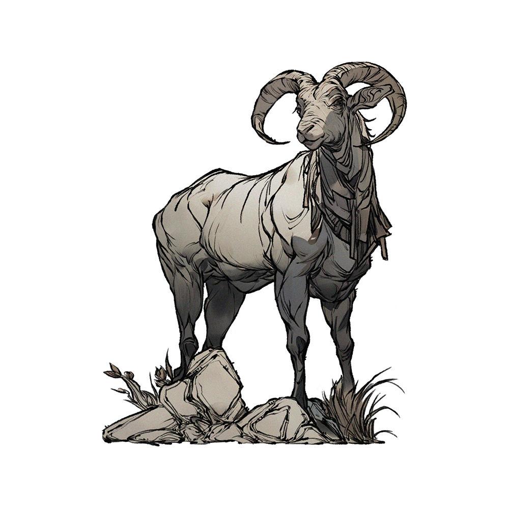 (岩羚。常见于山岩间,喜食铜汁铁水,其硬肤可防敌。好腾跃冲撞,然不常中。)