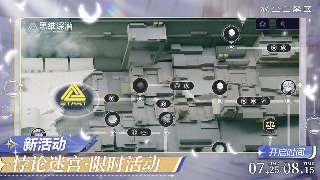 【悖论迷宫】限时活动「多维解集」现已在游戏内开启!新增迭战效果【思维深潜】与【精力限制】。活动期间,挑战悖论迷宫迭战模式将获得【思维译码】,前往「思维深潜」奖励兑换界面消耗【思维译码】可解锁各队员助战、兑换个人资料名片【恒定原理】等各类物资。