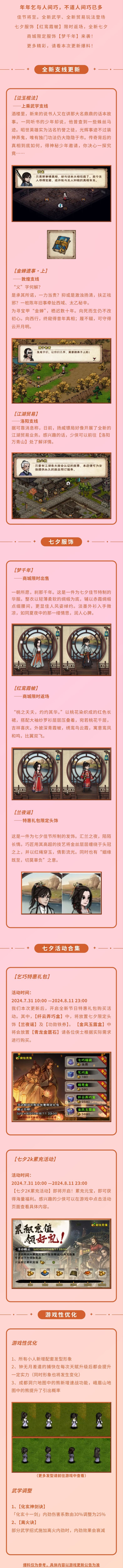 乞巧红鸾梦千年,金蝉泣玉义薄天——烟雨江湖7月更新爆料