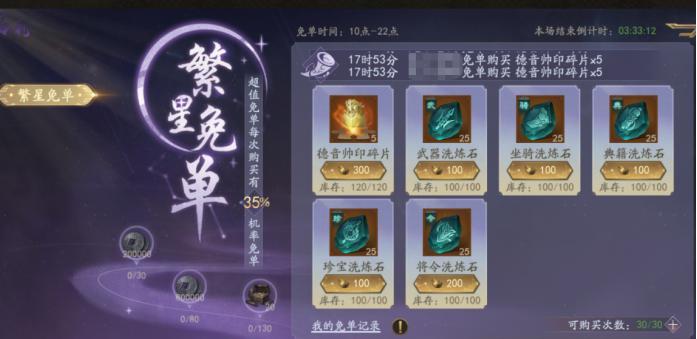首先我前面说的每天征战里的副本次数以及每天的政务次数这是必买的,就不多说了。