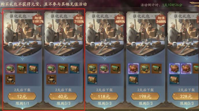 当然这个也是视自己情况而定,可以适当的买一点普通的强化礼包,毕竟强化也是提升武将战力实力必不可少的一部分。