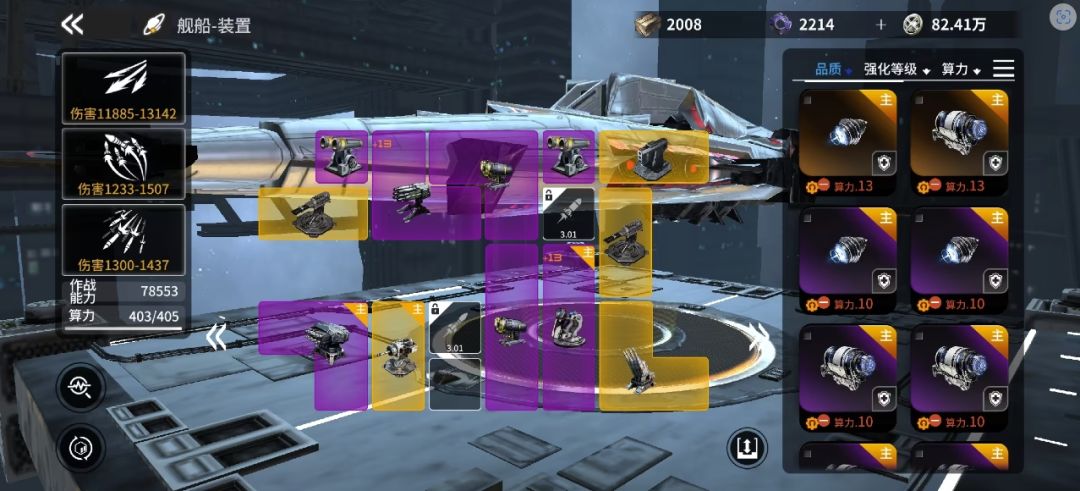 尽管第二个玩家选择了蓝色装置,但这些装置都是4格的占用空间,因此基础能力不弱。最近群里的大神们都推荐大家早点升级生产车间,造4格大型装置(部分3格武器升到10级之后可以改造成4格)。