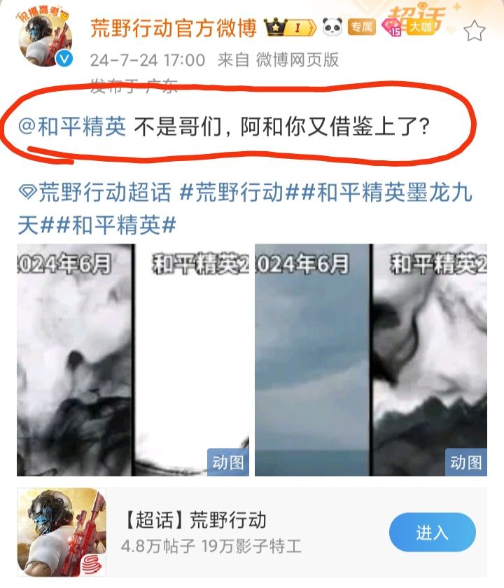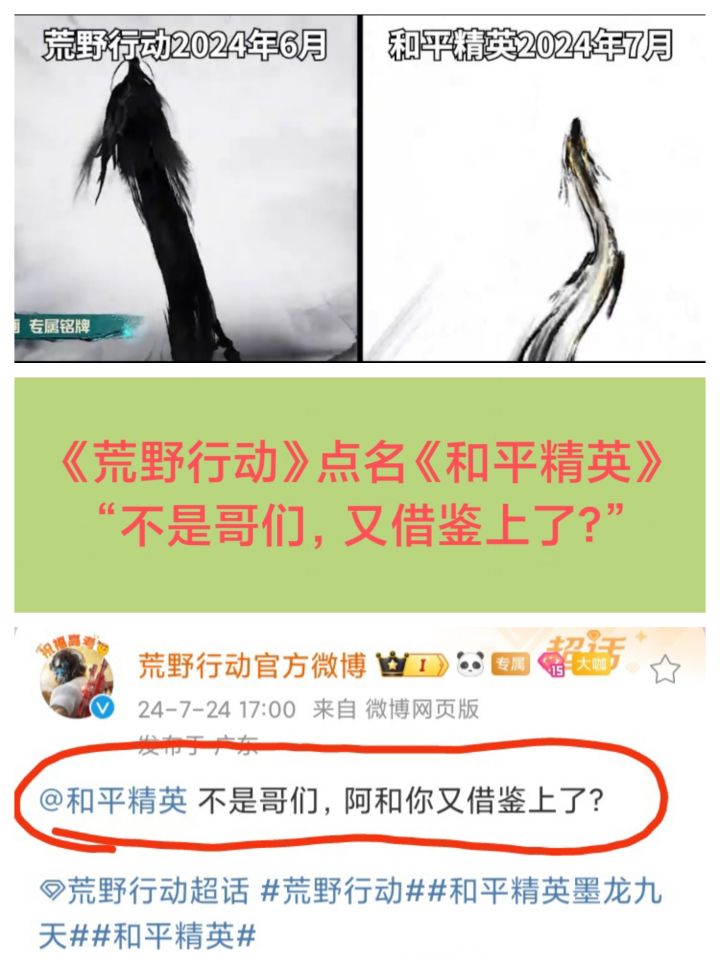 7/24号下午,《荒野行动》官博发文,点名《和平精英》抄袭借鉴❗❗❗