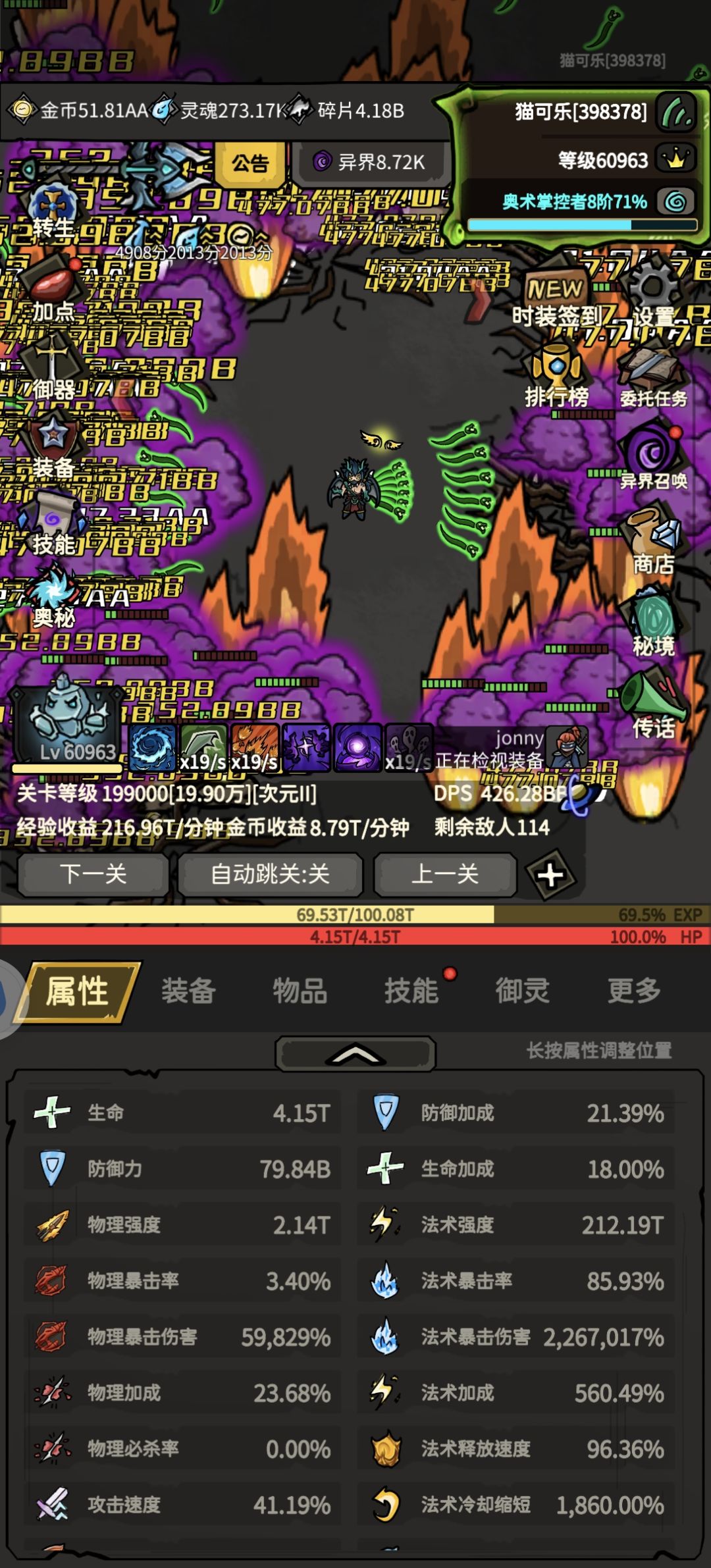 感觉这阶段实在是没提升了,9w8龙塔,技能都点了,剩下的稳定提升大概得开几天御灵箱子把4星换5星,然后开技能箱子把觉醒技能升满。