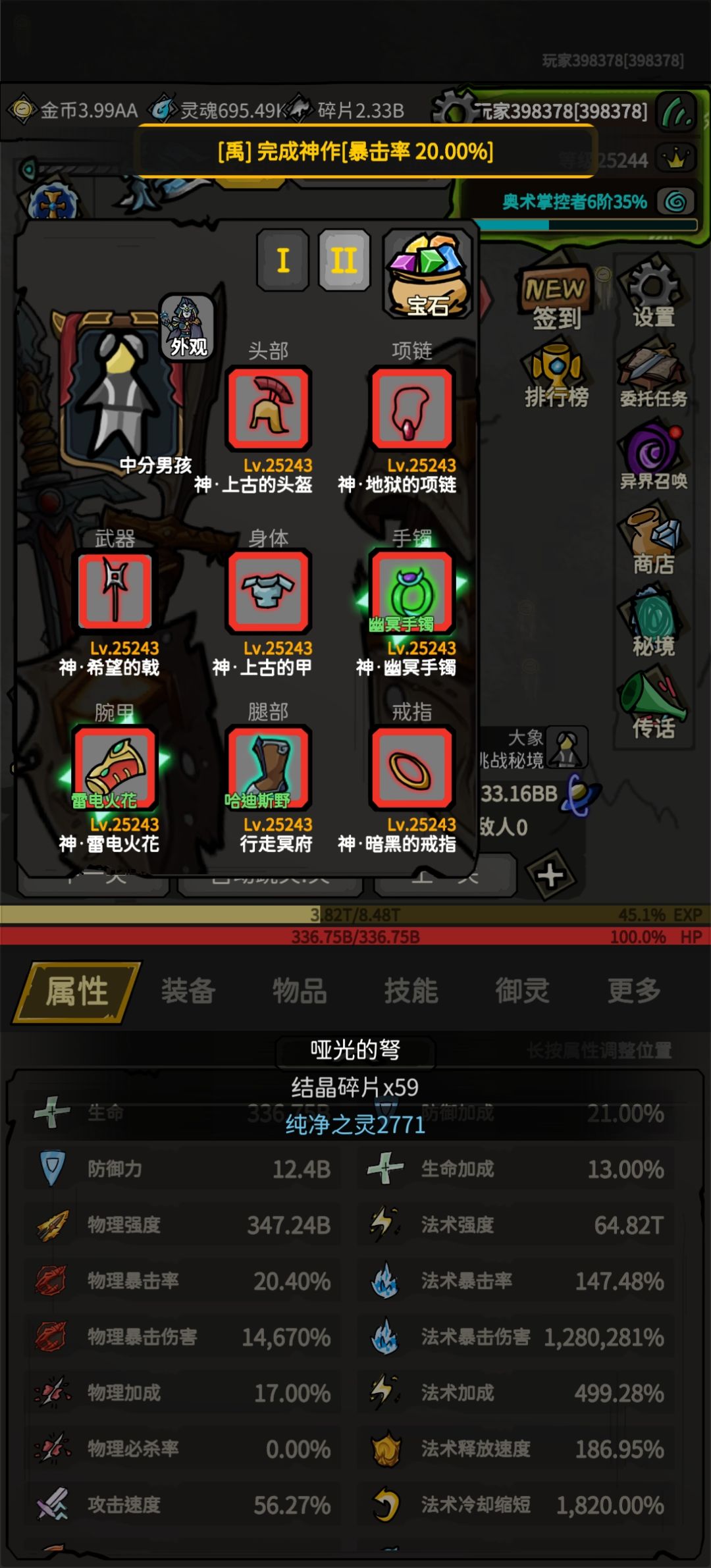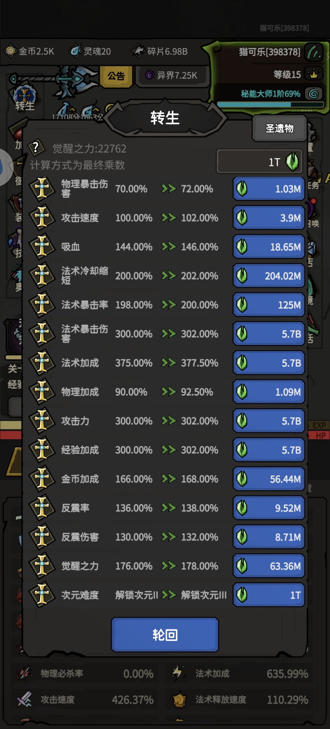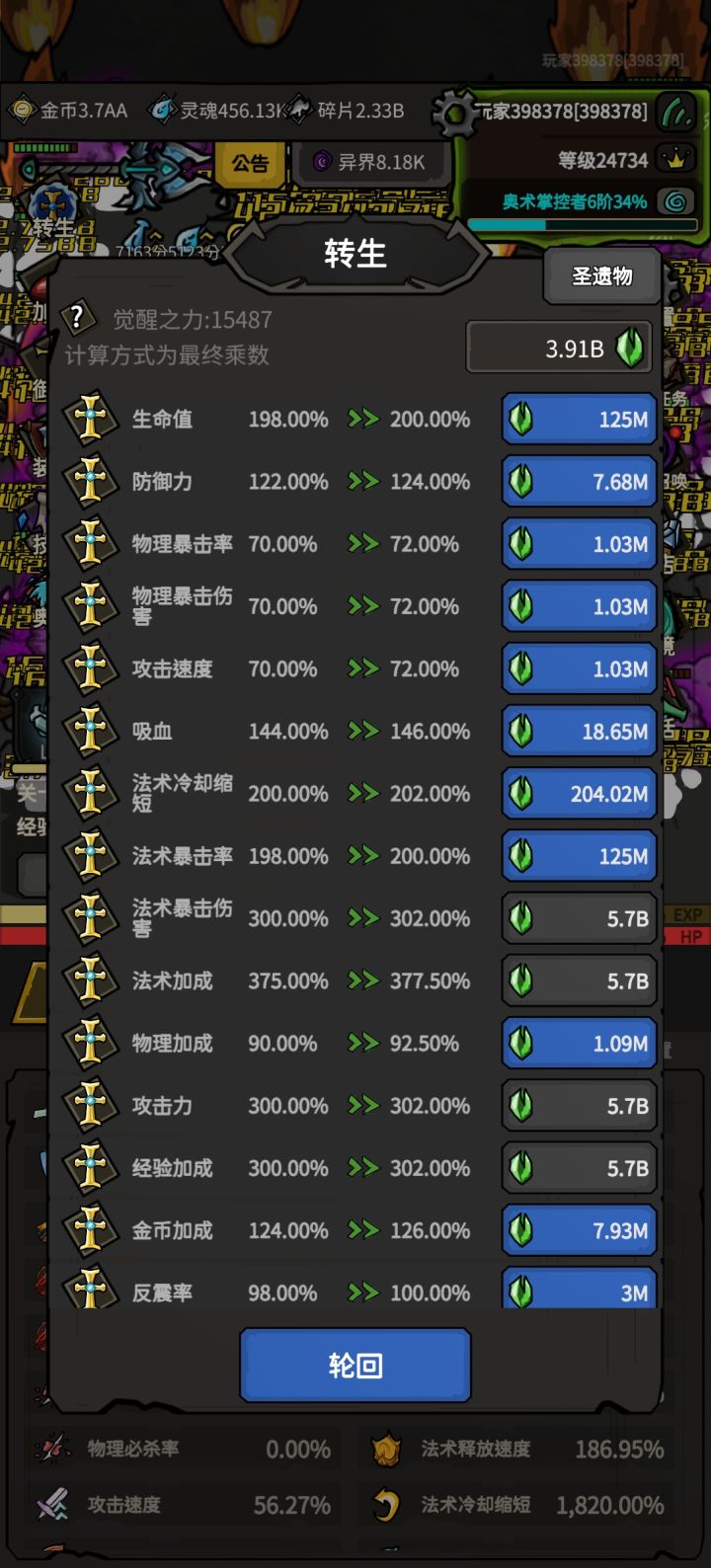 事实证明开三次元并不需要转生点太高的神力,每天广告/副本给的东西的成长比神力要赚很多。