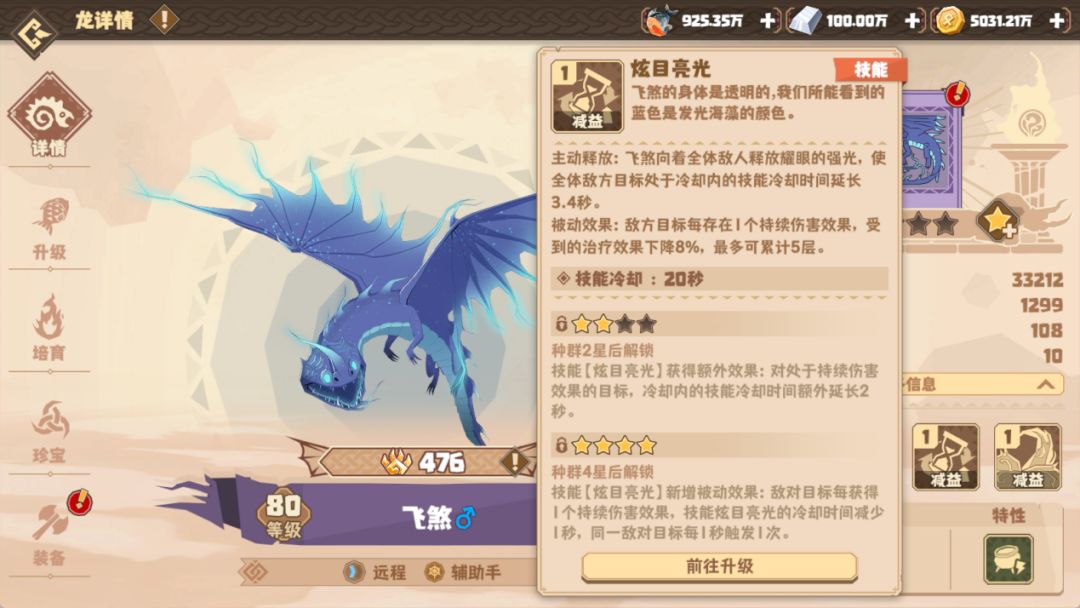 种群2星后激活技能【炫目亮光】获得额外效果:对处于持续伤害效果的目标,冷却内的技能冷却时间额外延长2秒。