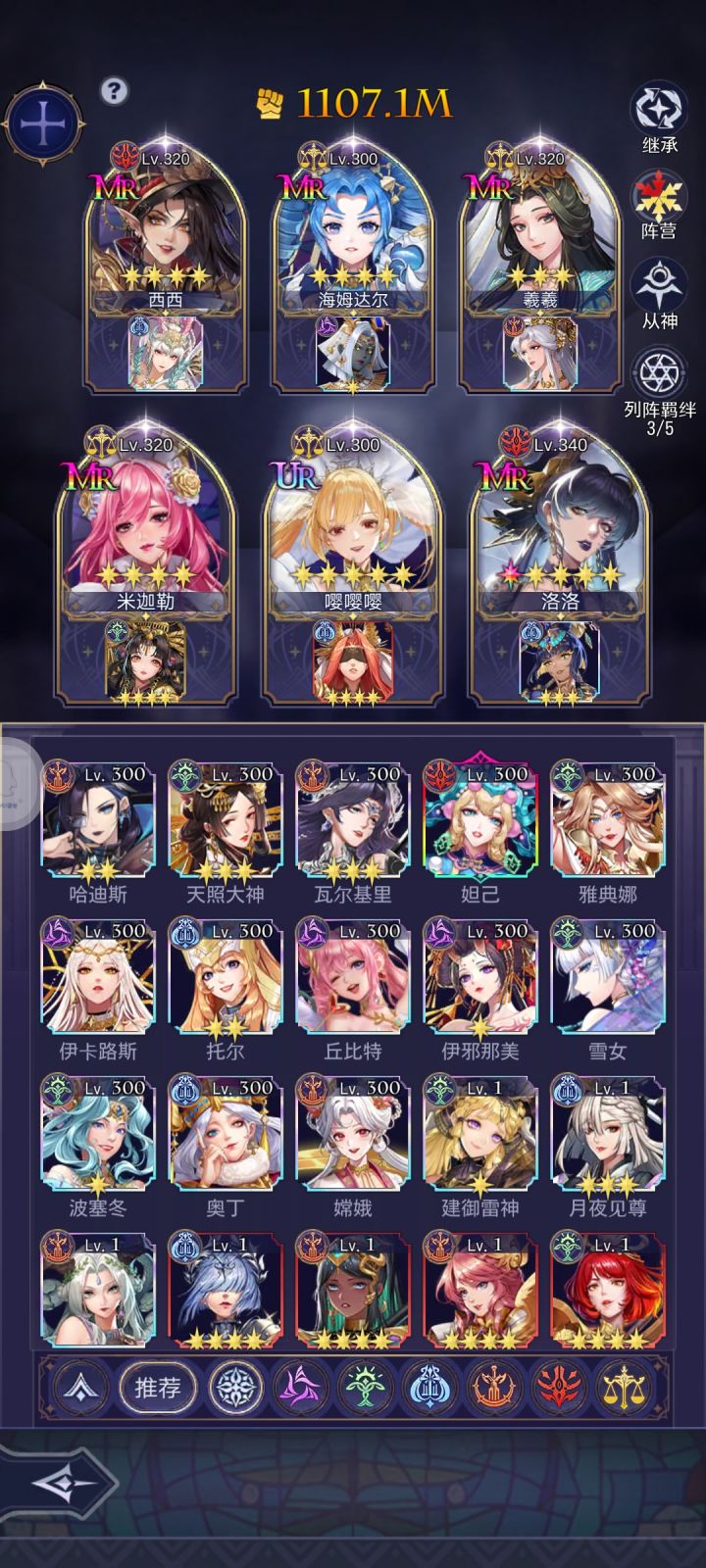 这个游戏基本都是要保底才出UR极以上神格,所以如何分配抽卡就尤为重要了。这个游戏里有四种抽奖券,分别是上古召唤券,因为颜色是紫色,我简称他为紫票,可以抽随机抽各个阵营的女神,包括路西法/赫拉,建议是有就抽不留库存。