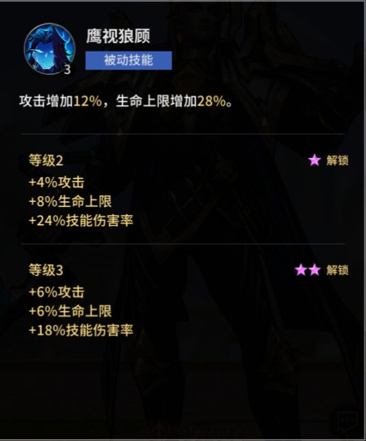 使用技巧:提高墨菲斯托的攻击力和生命上限,增加保命和输出能力,升星获得的技能伤害率带来巨大伤害提升。