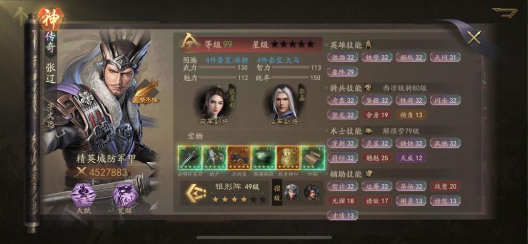 灵玉的出现除了增加了很多数值外就是开启了第六件装备,让我成功触发了云昭前四件的联动,在四维的增加上非常成功,在四维上得以压制大部分将领。
