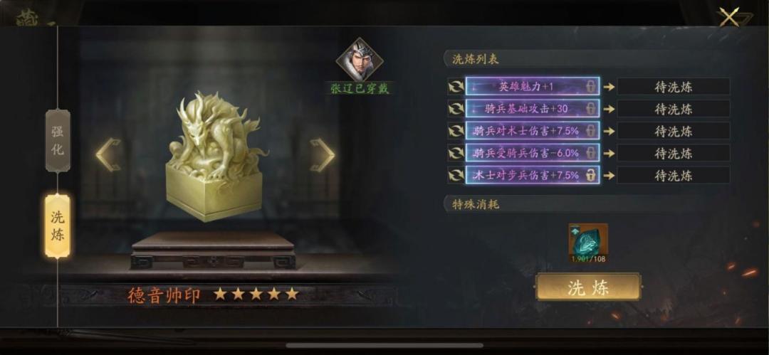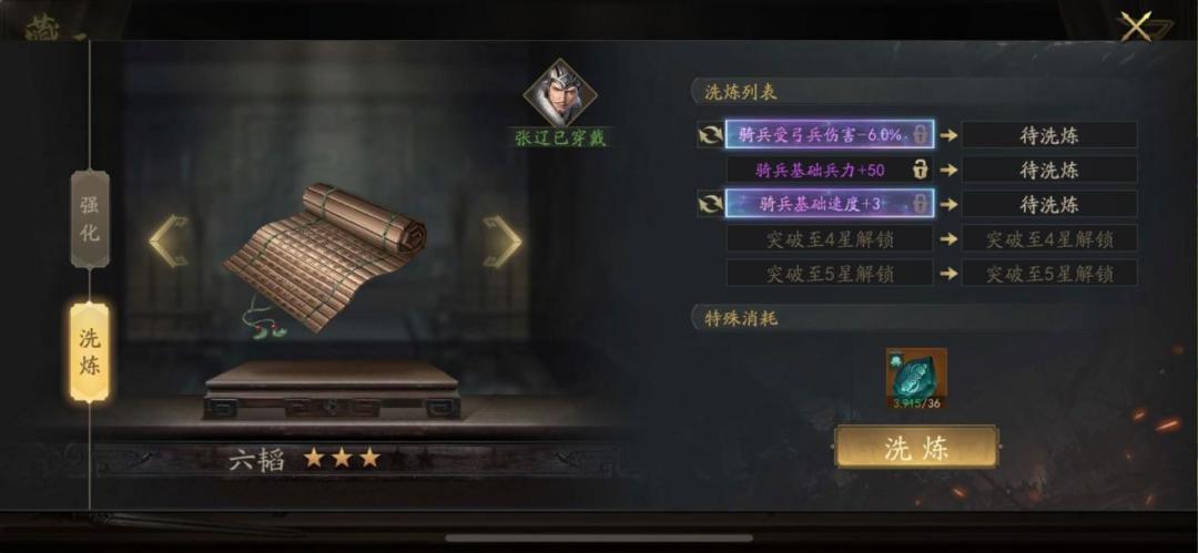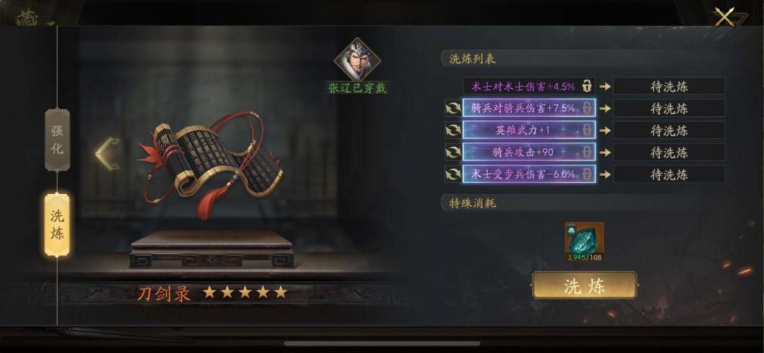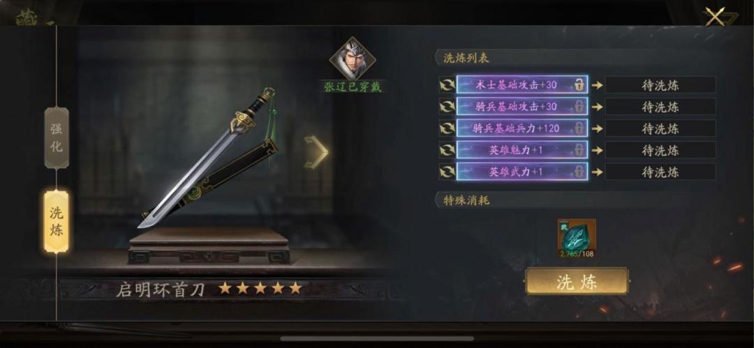 零氪的极限张辽没有选择,云昭必须要有的,鸣鸿刀并不是很适配,其他四星装备少一个词条直接不考虑,但是零氪云昭拿不满,所以选择其中三件拿满,不换云昭将令,剩余的神韵币拿去S3换云昭突破印,每期消费两万元宝必须拉满,羊脂玉要攒好,全部都留给云昭套,洗炼石至少满一万再开始洗,S2的任务就是做好洗炼材料的积攒和装备的收集,承接S1的神将,为S3的神将五神装出战埋下伏笔。这里给大家展示一下我目前装备的洗炼词条。
