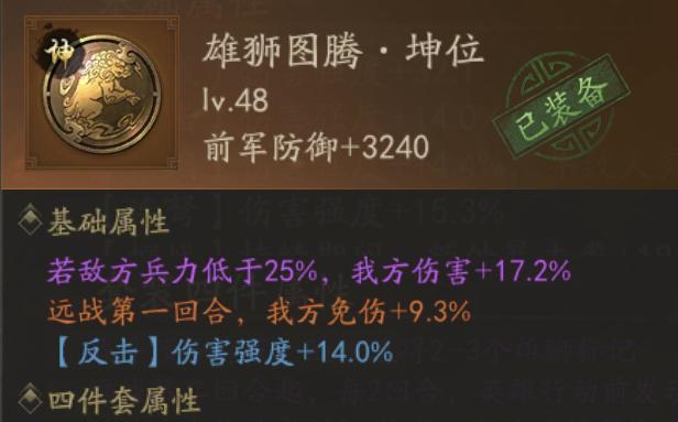 主要是前军为主,他的图腾,乾,坤位要尽量升高级,他也是近战回合输出的,前军防御保证持久作战,前军攻击,保证反击伤害