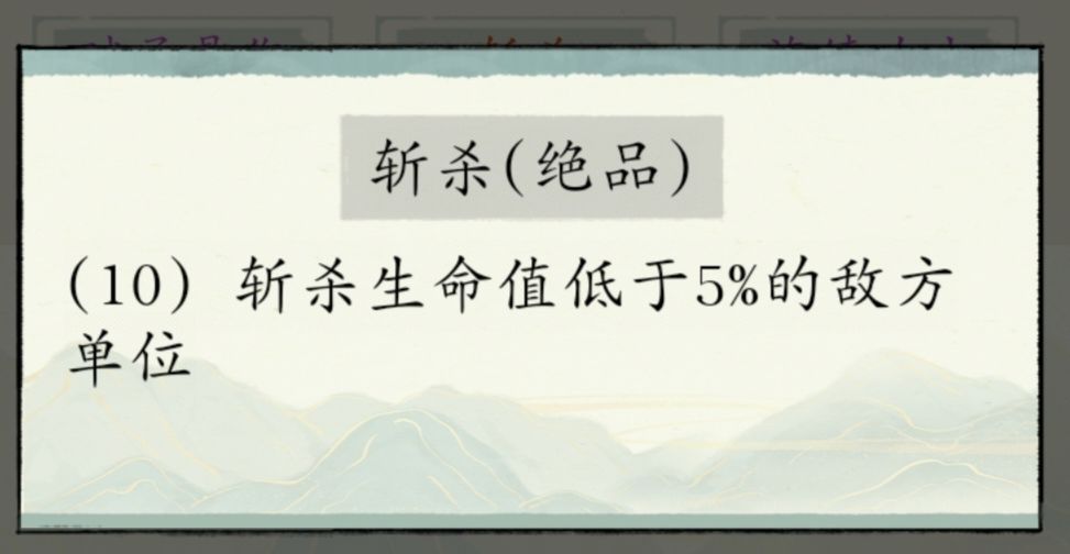 ①斩杀:这个必须带,一是因为现在还是人均大荒蛮体,不带这个很难打过对面,二是因为这个对boss也有用,比如业障boss一千亿血,只要低于45亿就斩,前提是橙色斩杀和50级以上的阵旗等级。等90级阵旗,就是低于50亿直接斩杀。