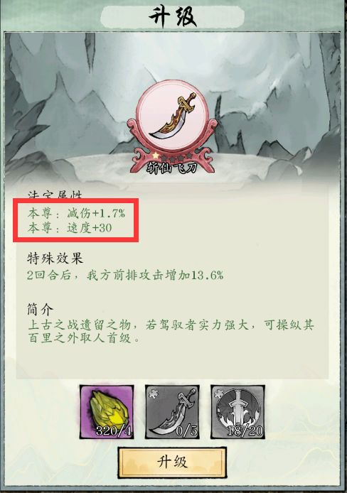 红色法宝飞刀和珠子1星后,可以先开上清阵图,开完上清后,再升级满飞刀和珠子(红宝我只有俩个,算是属于知识盲区)。