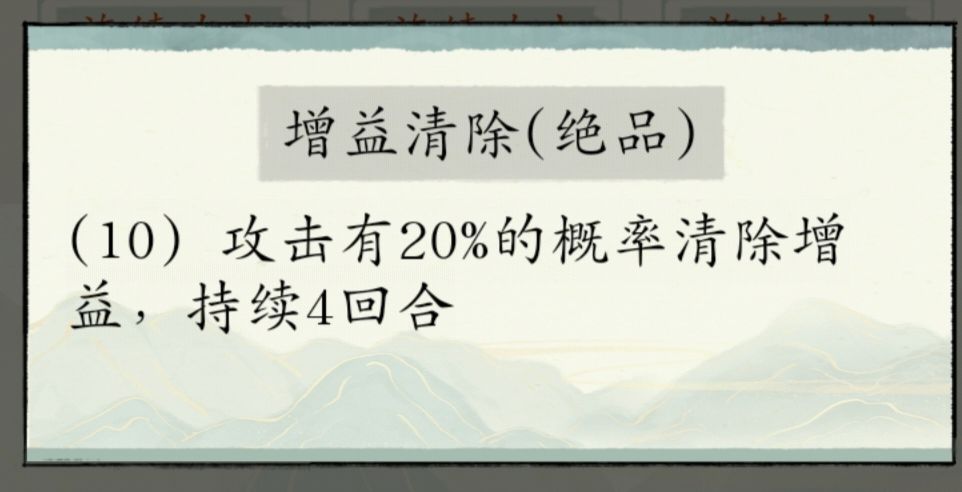 ④增益清除:这个是真挺有用的,可以给朱雀带着。比如(以下都是满星法宝)红宝加48%攻击,橙宝加18%,紫色加12%,还有朱雀50%,甚至登峰造极加15%-90%等等等等,单是攻击buff这种东西叠加就高的离谱,更别说还有各种其他什么加速啊,什么这样那样的buff,除了叶秋霜的被动不能被清除,仔细想想,一旦触发增益清除(不知道是不是全部清除),对面就剩个叶秋霜buff,你十几,二十个buff,对面还怎么赢???而且增益清除前四回合都有概率触发。