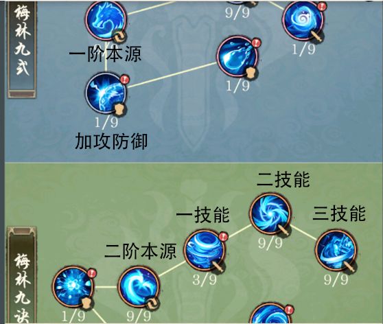 二是传承特效问题,传承分为剑传承和其他传承,因为所有技能都是4回合冷却,而剑传承有连击,所以5个输出技能无脑拉满即可,而其他传承要考虑的事就多了。呸,说错了,而其他传承带4个攻击技能其实就够了,剩下那个位置,可以带一个加攻的防御技能(第一本源后的那个)