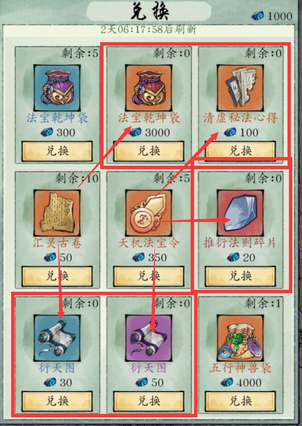 优先切磋函和鸳鸯录,然后建议存着买混沌心法(前期就缺几个异魂也可以换风晶拿穷奇分解应急,但是还是建议买混沌心法)。大乘后每周可以顺便买几个绝情书,切换戚馨岚或者顾洛汐,一周升一次技能,一周炼一次修元丹和神兽突破丹。