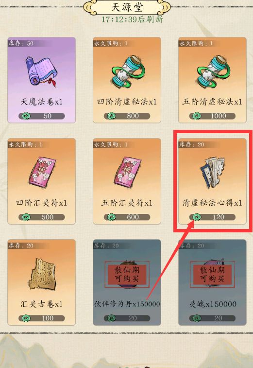 1.清虚秘法必买(注意不是汇灵古卷,这是俩个东西),2.橙色法宝袋和推演法则碎片值得买。3.剩下的紫色衍天图、蓝色衍天图云晶够的话也买。4.蓝色法宝袋子前期也可以买点,紫色法宝袋不用买。5.其他,看自己需求购买。