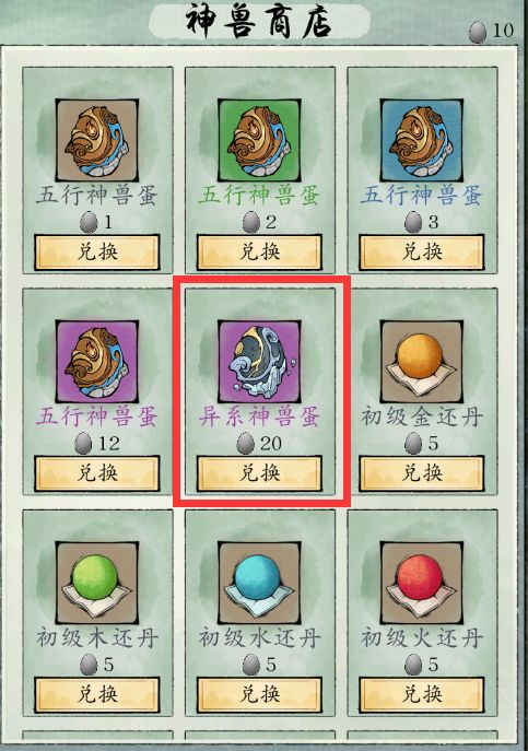 只换异系神兽蛋,后期双神兽都满星后就随意了(高级丹后期兽潮商店有很多,不用特意这里换高级兽丹)。