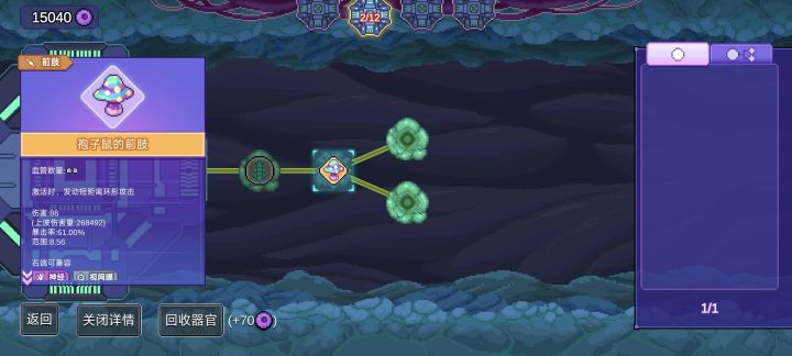 第二个脑用来触发斩杀效果(怪物没有受伤不会被斩杀)用了触发最快的狂犬脊柱和范围最大的孢子鼠前肢。