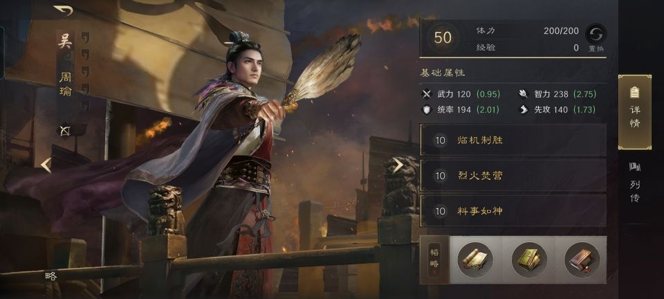箕形阵的后排角色,都会获得12%的伤害值提升,对于周瑜来说自然是锦上添花的。在临机制胜的基础上,后续学习了烈火焚营和料事如神,有了金书火计的加持,周瑜完全可以凭借一己之力承担起群体伤害和技穷的重任。