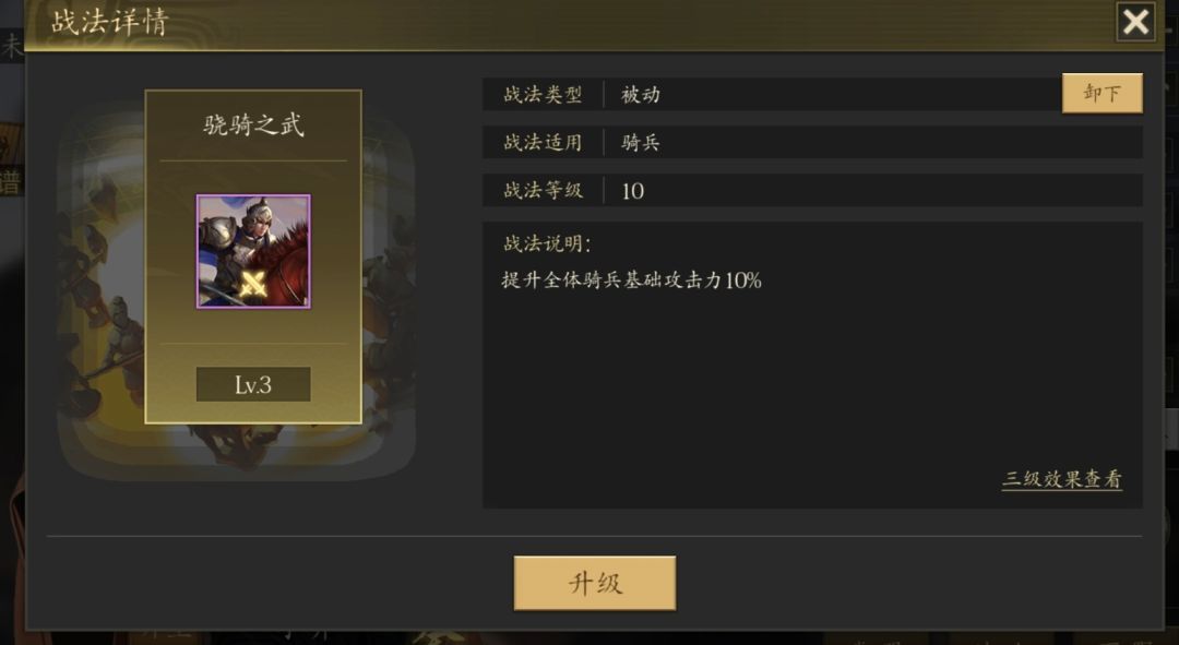 二,骁骑之武。无论轻骑兵还是重骑兵,都能提升他们最多10%的基础攻击力。他们速度最快,也是很多玩家们的首选。