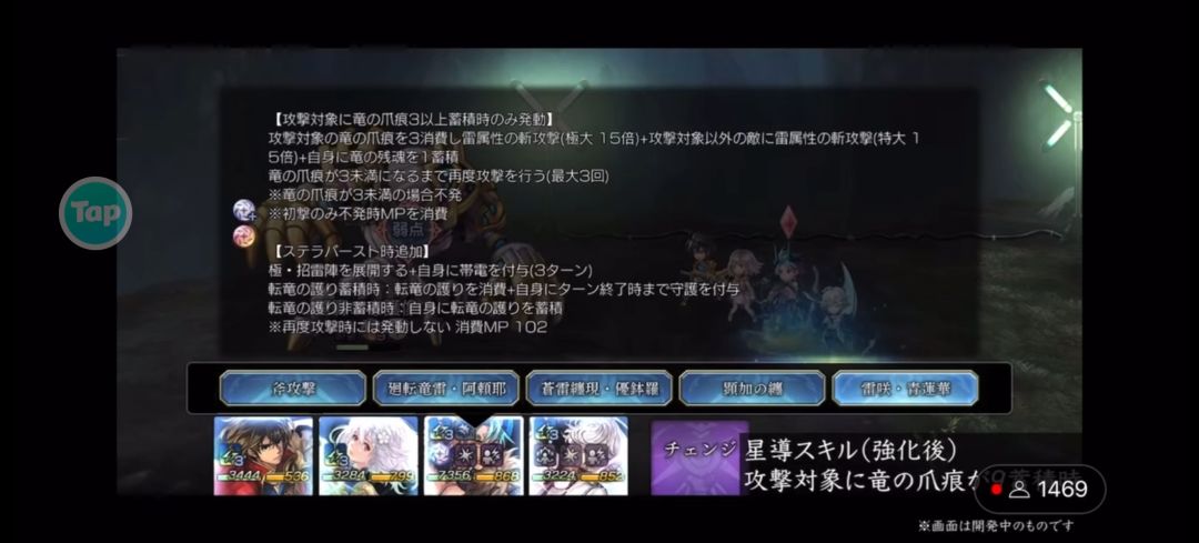 [龙之残魂]回合结束时消耗一颗龙之残魂,给予全体敌人雷属斩攻(特大 4倍)+累计1颗龙之爪痕