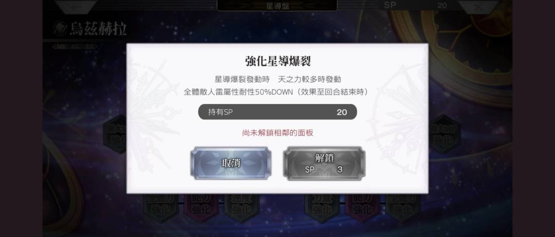 星爆时且天多时,敌方全体雷属50%down(效果至回合结束)