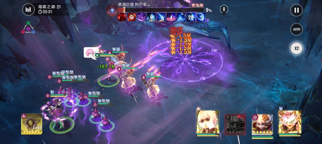 一一这个新打法的核心思路就是震荡给桃子上增攻59%buff后,桃子在buff期间开大,因为桃子全程召唤物不会死,所以一直继承着最高攻击力时的面板。而震荡在第一轮魔阵结束后,会被BOSS一屁股坐死,完成它的使命。