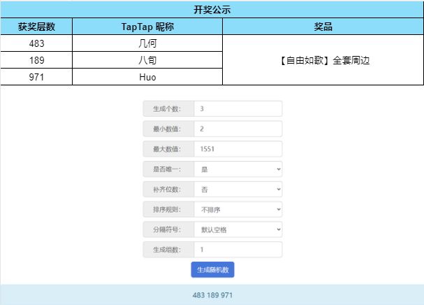 根据开奖结果显示,恭喜以下幸运的玩家们获得奖品: