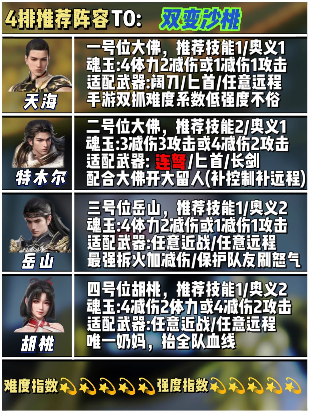 ✅今天就给大家带来永劫无间单/双/四排中的人物梯度排行和四排强势阵容推荐: