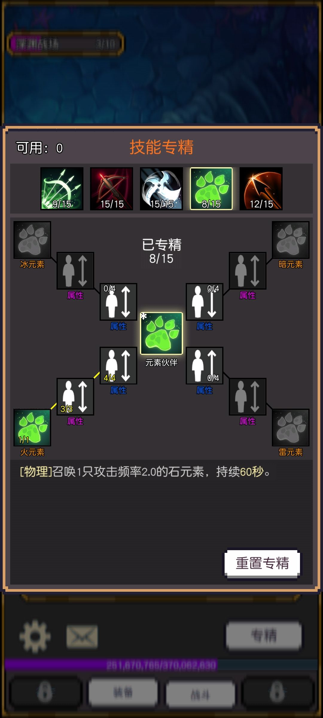 属性堆格挡到30稍微看脸 再上几个命中回复的装备堆高这两个越高越好 其他的暴击-专注消耗-冷却-生命-闪避 两个箭术搭配武器回蓝差不多 技能箭术回蓝 伤害 刀扇单体伤害 元素左下角防御格挡攻击 缺点就是打boss会缺蓝其他没啥