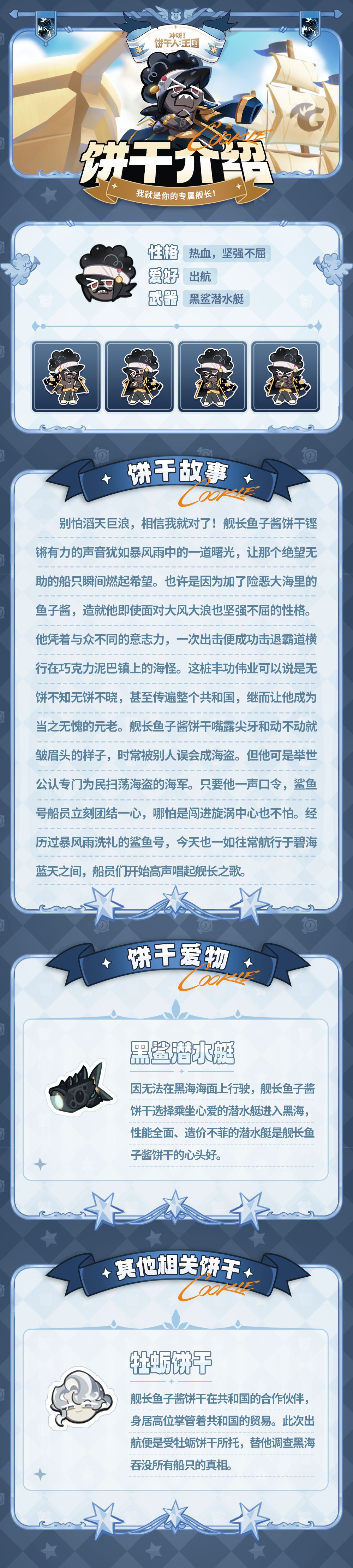 舰长鱼子酱饼干铿锵有力的声音犹如暴风雨中的一道曙光,让那个绝望无助的船只瞬间燃起希望。只要他一声口令,鲨鱼号船员立刻团结一心,哪怕是闯进旋涡中心也不怕。经历过暴风雨洗礼的鲨鱼号,今天也一如往常航行于碧海蓝天之间,船员们开始高声唱起舰长之歌!