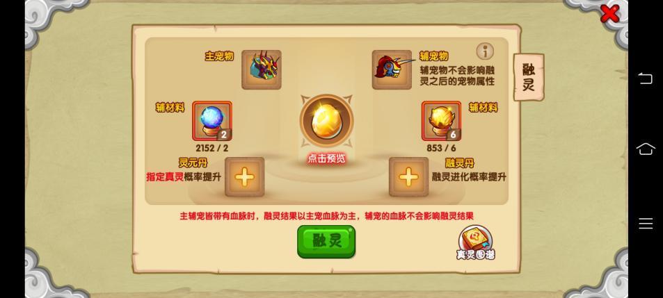 其他合成真灵的细节问题可以点击上图中那个辅宠物旁边的感叹号查看,下面那个真灵图谱可以查看真灵的合成途径。