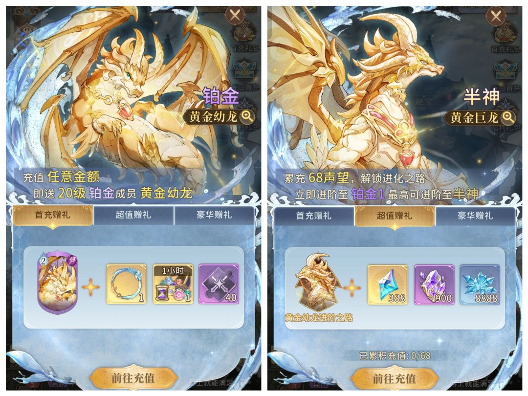 A:收到!我们进行了首充奖励、累充68元档位奖励及碧蓝幼龙的调整~调整后碧蓝幼龙被全新的小龙替代,后续也将上线转化功能供大家选择是否将碧蓝幼龙转化为其他资源。此外,所有的碧蓝幼龙获取途径也进行了相应调整,调整为全新的奖励。领取过首充、68元档位奖励或是触发过相应档位条件但未领取的祖宗大人们,我们已经重新发放了全新的小龙和全新的68元档位奖励~