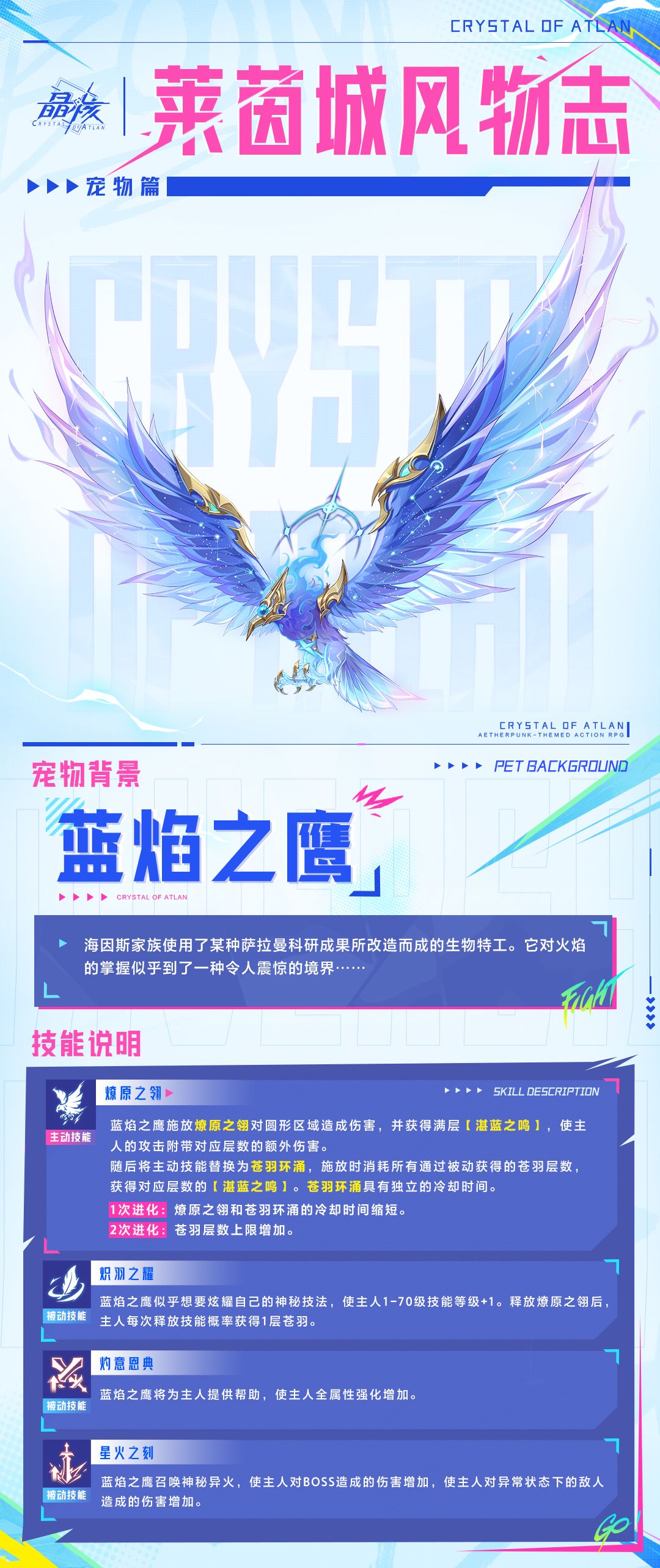 本期《莱茵城风物志》给冒险者带来蓝焰之鹰的技能爆料,和蓝焰之鹰一起遨游阿特兰世界吧~