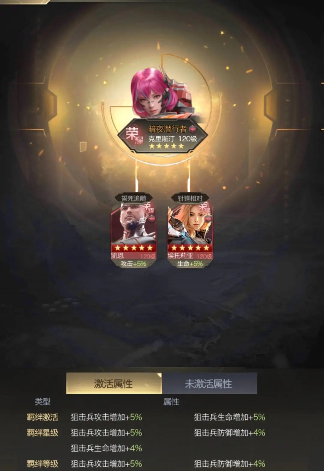 荣耀克里斯汀可与荣耀凯恩和荣耀埃托利亚结成羁绊关系,进一步提升指挥官部队三维属性。