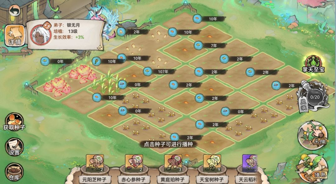 随后把种子放置于仙圃之中,种子经历成长会转而变成灵植。