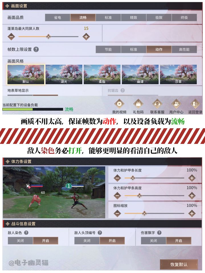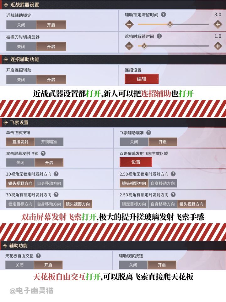 ✅【键位/设置】默认设置可以,但其实最好是根据自己的操作习惯略微改一下。比如某些技能的释放按键从多次点击,改为双击直接释放。也可以提前根据英雄技能习惯设置连招。