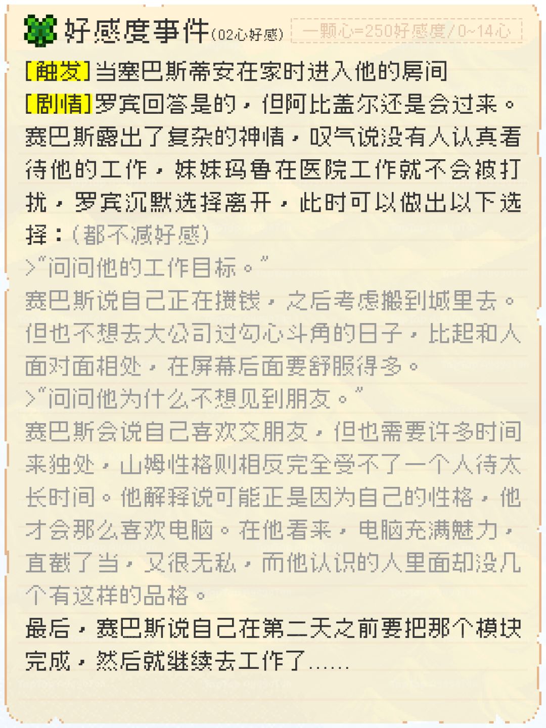 星露谷物语 赛巴斯蒂安人物志